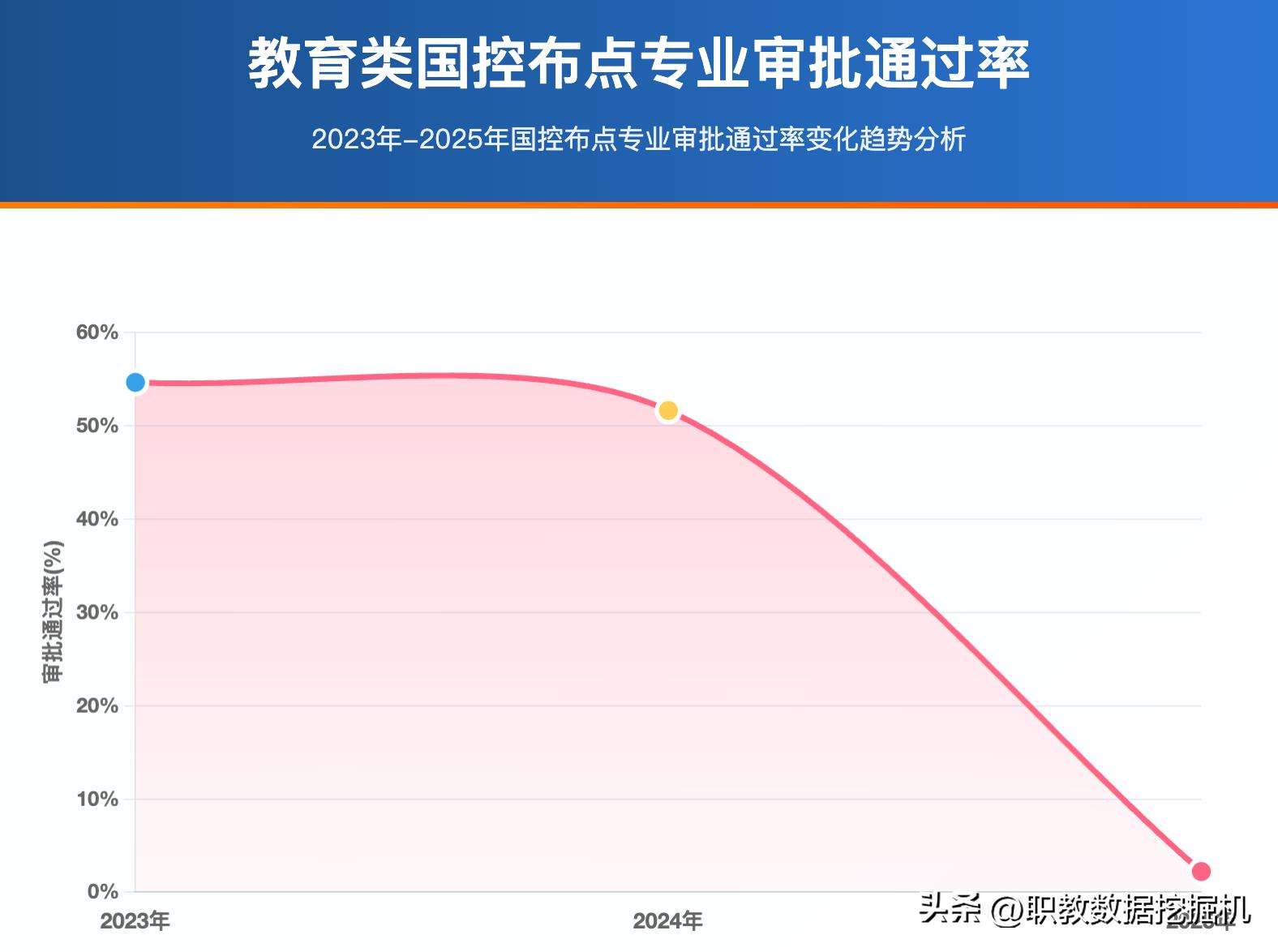 2025年高职专科国家控制布点专业审批结果显示,教育部受理的45个教育类专业新设申请中,仅同意设置1个专业点,不同意设置44个专业点。这意味着:
