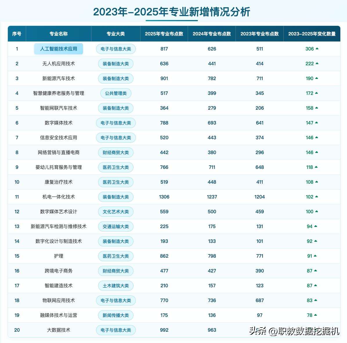 再看第二张图,这是从2023到2025年,高职专科专业布点增长量前20名的专业,毫无疑问,第一名属于